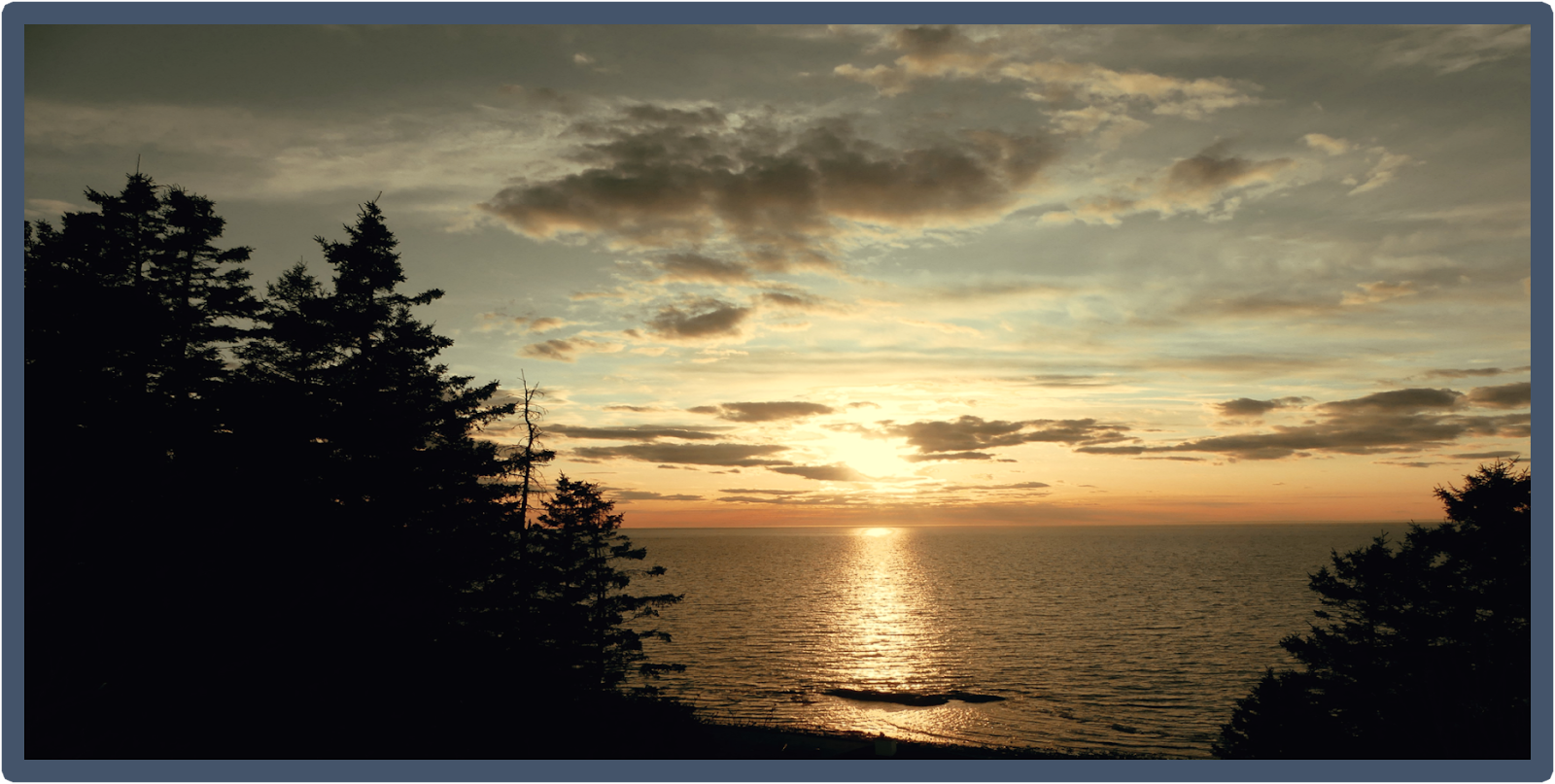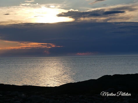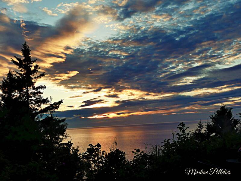 Ce bord de mer, situé en Gaspésie où le soleil se donne en spectacle, évoque une paix profonde, parfaite pour conclure la journée en douceur et en espérance.